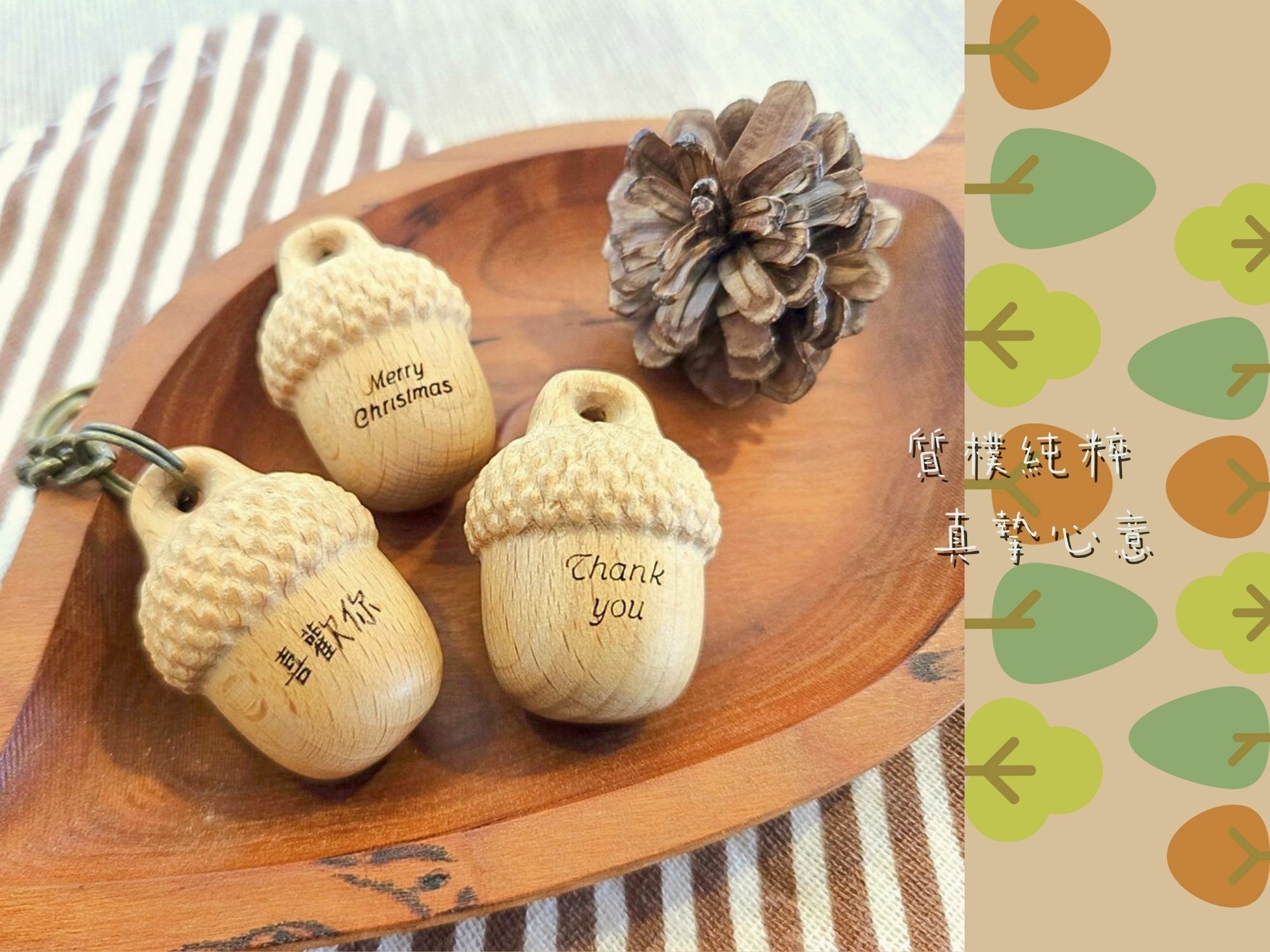 此款橡實造型鑰匙圈,以大自然的橡實為原型,使用CNC旋轉軸加工製作,細緻呈現其獨特的形狀與質感。