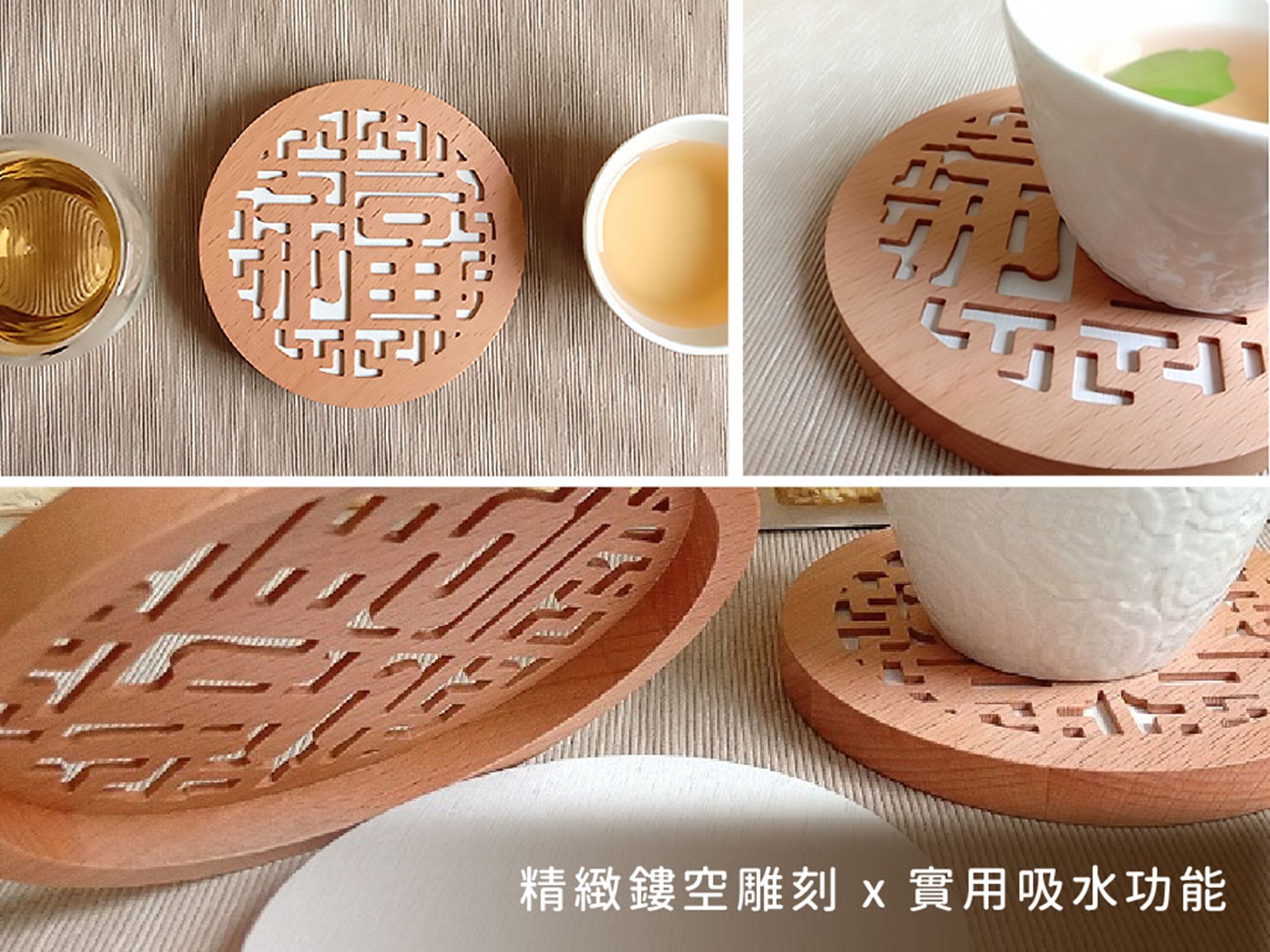 這款囍字原木杯墊不僅是實用的小物,更承載著祝福和美好的寓意。