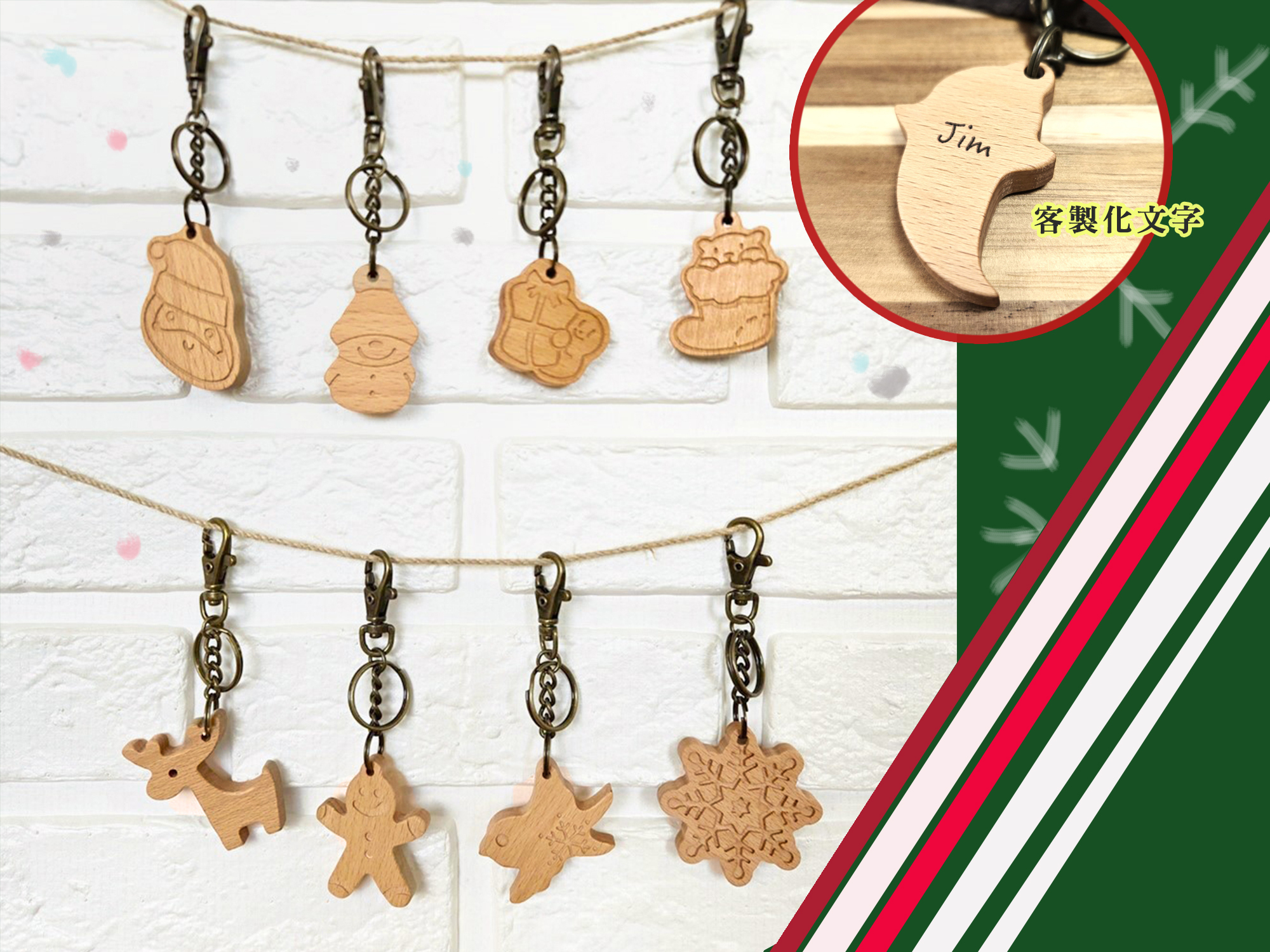 可愛木頭聖誕鑰匙圈,細緻特色雕刻,客製化文字服務,充滿過節氛圍,家人朋友交換禮物