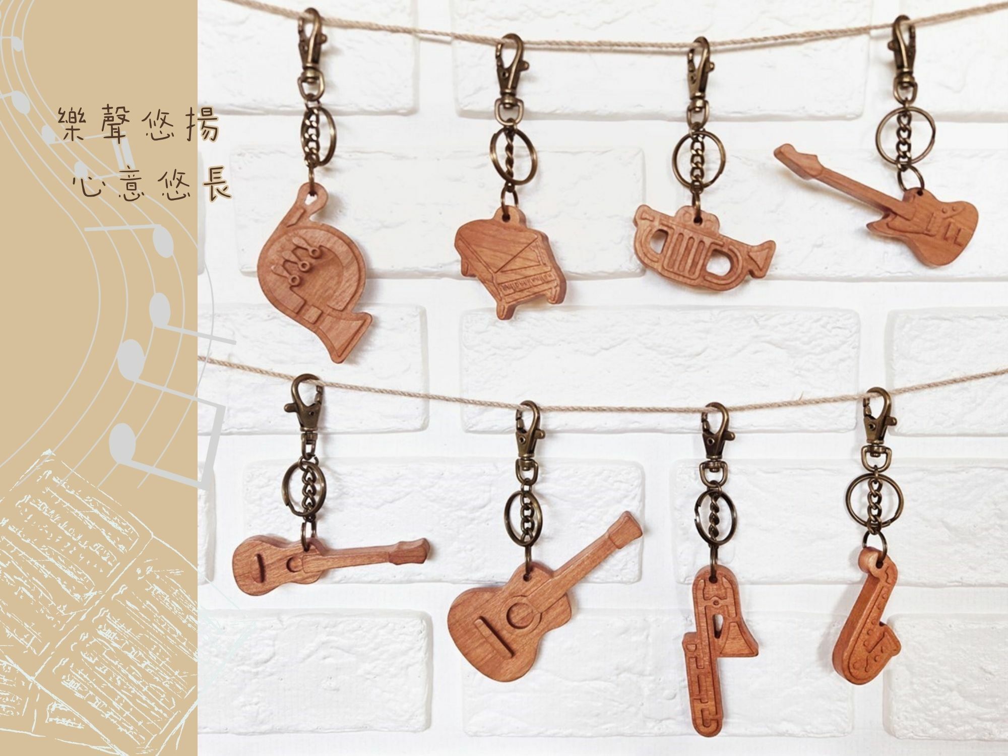 讓音樂的魅力隨時陪伴在你身邊!樂器原木鑰匙圈將樂器的造型透過與CNC雕刻呈現