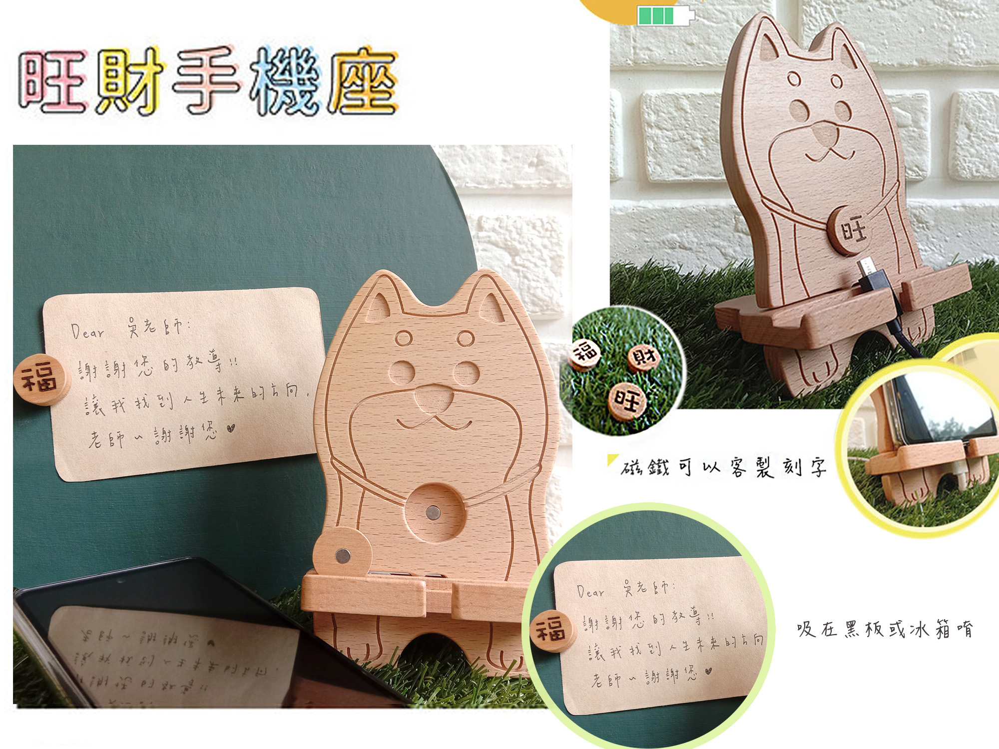 以這隻充滿喜氣和活力的小狗為靈感,將它的快樂與旺運帶入你的生活。手機架的設計巧妙融合了旺財狗狗的可愛模樣並將象徵財富的元素結合磁鐵,